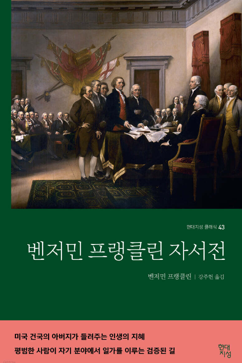 벤저민 프랭클린은 자신의 자서전에서 아들 윌리엄 플랭클린에게 글을 전하는 형식으로 자서전을 작성하였습니다. 당시 65세였던 플랭클린은 조상에 대해 아들에게 말하는 형식으로 자서전을 시작하였습니다. 어린 시절 책 읽기를 좋아했으나, 아버지의 독단적인 판단으로 정규교육을 짧게 마치고 형의 인쇄소에서 도제로 일을 하게 됩니다. 제임스 형이 세운 신문사에 익명의 글을 올리게 되고, 그 글을 제임스형과 친구들에게 인정받게 되고 그 글은 신문에 실리게 됩니다. 하지만 그 사실을 고백한 벤자민은 형에게 혼이 나고 갈등이 시작됩니다. 하지만 결국 벤은 도망치게 되고 필라델피아로 이주하게 됩니다. 벤은 제임스 카이머라는 인쇄업자에게서 일자리를 얻게 되고 윌리엄 키스 총독에게 눈에 띄어 인쇄소를 차리라고 권유받게 됩니다. 보증 편지를 써 주겠다던 총독은 벤이 영국에 도착할 때까지 어떠한 편지도 보내지 않았고, 벤은 그제야 자신이 속았다고 깨닫게 됩니다. 영국에 머물면서 그는 파머인쇄소에서 일을 하면서 18개월을 런던에 머물렀습니다. 다시 필라델피아로 돌아와서 총독을 만나게 되었지만 아무 말 없이 돌아가게 되었습니다. 다시 돌아온 벤은 카이머 인쇄소에서 일하게 되었고, 둘 사이는 그리 좋지 못했습니다. 같이 일했던 메르디스 아버지의 도움을 받아 동업을 시작하였고, 근면하고 성실하게 일을 하였습니다. 새 인쇄소는 금방 망할 것이라는 예상을 하였지만 열심히 일하는 동안 사람들에게 좋은 인상을 받았습니다. 결국 카이머의 신문사를 헐값에 인수하게 되었으며, 그 신문은 벤에게 이익을 안겨 주었습니다. 벤의 신문사는 활자체가 좋았고 인쇄상태가 좋아서 사람들에게 인정받고 많은 사람들이 구독자가 되었습니다. 벤은 지식인들로 구성된 준토클럽을 형성하고 여러 책을 논의하고 사회이슈에 대해서도 논의하는 모임을 가집니다. 이 준토클럽을 운영하면서 회원제 대출 도서관을 설립하기 위한 계획안을 작성하였고 이 도서관을 모태로 무수히 존재하는 회원제 대출도서관이 생겨났다고 해도 과언이 아닐 것이라고 합니다.